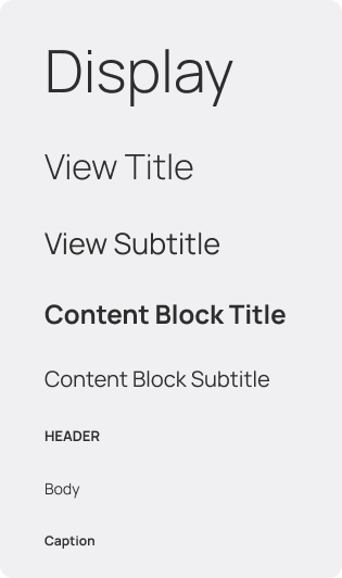 | View Subtitle | Regular 20px | .view-subtitle | Used for subtitles within a View. |